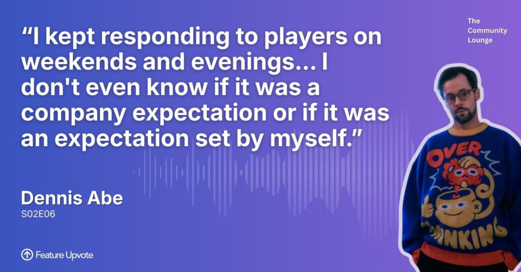 “I kept responding to players on weekends and evenings… I don’t even know if it was a company expectation or if it was an expectation set by myself.” – Dennis Abe (S02E06)