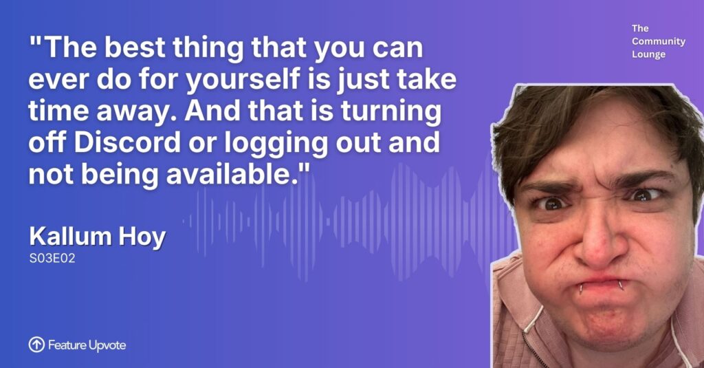 “The best thing that you can ever do for yourself is just take time away. And that is turning off Discord or logging out and not being available.” – Kallum Hoy (S03E02)
