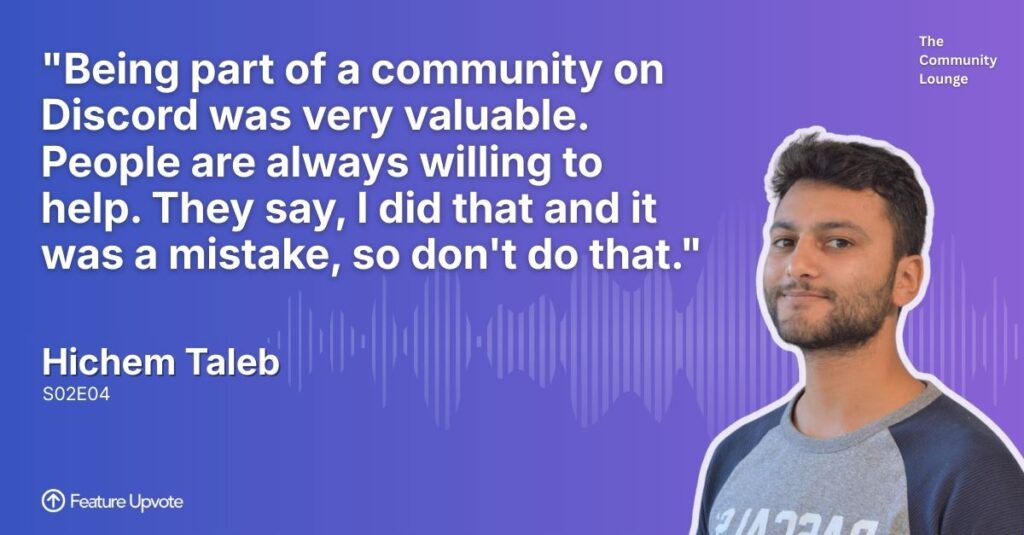 “Being part of a community on Discord was very valuable. People are always willing to help. They say, I did that and it was a mistake, so don’t do that.” – Hichem Taleb (S02E04)