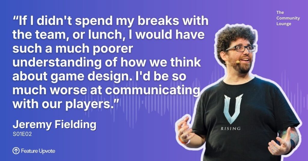“If I didn’t spend my breaks with the team, or lunch, I would have such a much poorer understanding of how we think about game design. I’d be so much worse at communicating with our players.” – Jeremy Fielding (S01E02)