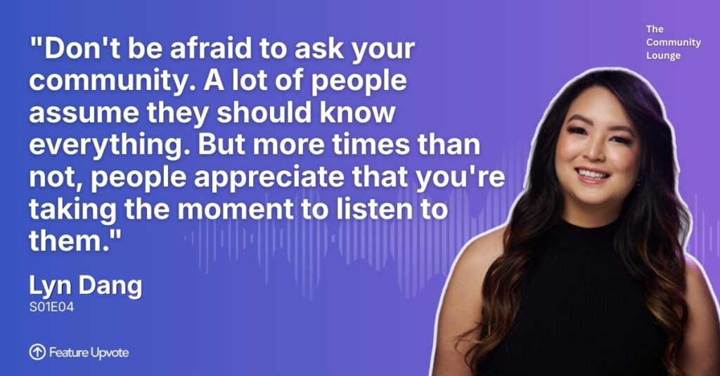 “Don’t be afraid to ask your community. A lot of people assume they should know everything. But more times than not, people appreciate that you’re taking the moment to listen to them.” – Lyn Dang (S01E04)