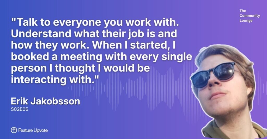 “Talk to everyone you work with. Understand what their job is and how they work. When I started, I booked a meeting with every single person I thought I would be interacting with.” – Erik Jakobsson (S02E02)